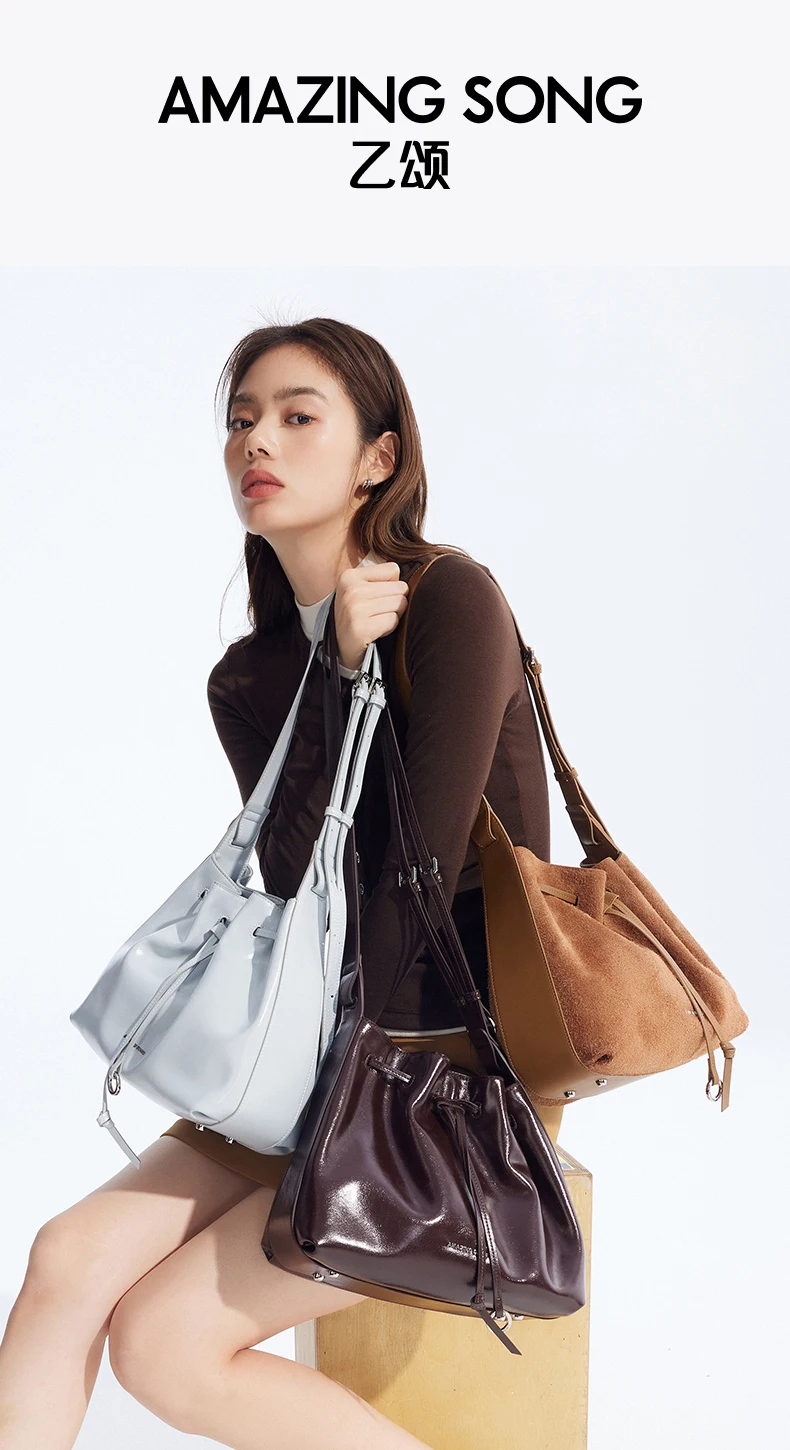 Amazing Song Donut Drawstring Bucket Bag Women's Diagonal Package Autumn Faux Suede 2025 New Original Design Women's Fashion Bag