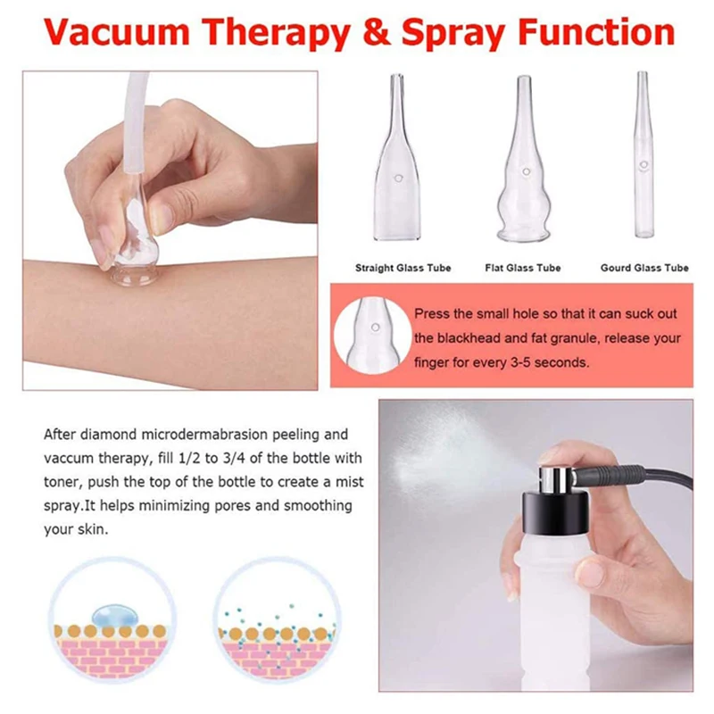 Provides Different Functions: Combine with diamond pens provide different functions such as remove dead skin, anti-wrinkle, remove fine lines and wrinkles, deep pore cleaning, remove acne, blackheads and scars, keep skin fresh.