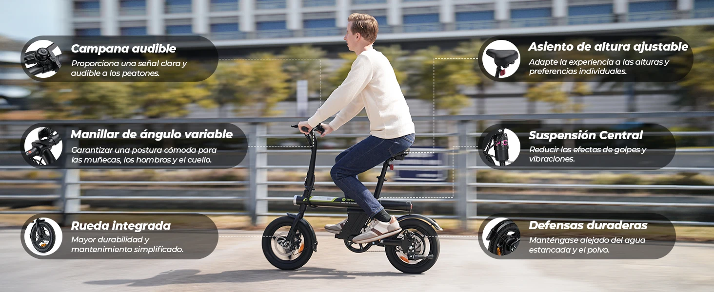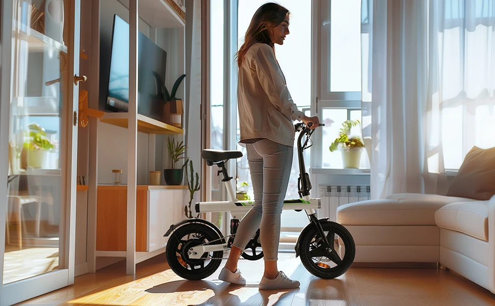 【Excellent Portability】- With foldable handlebars, pedals, and a height-adjustable seat, the U1 small electric bike is designed for minimal storage space (<0.15m³). Whether fitting in a car trunk, navigating elevators, or keeping your apartment uncluttered, it's your ideal first e bike