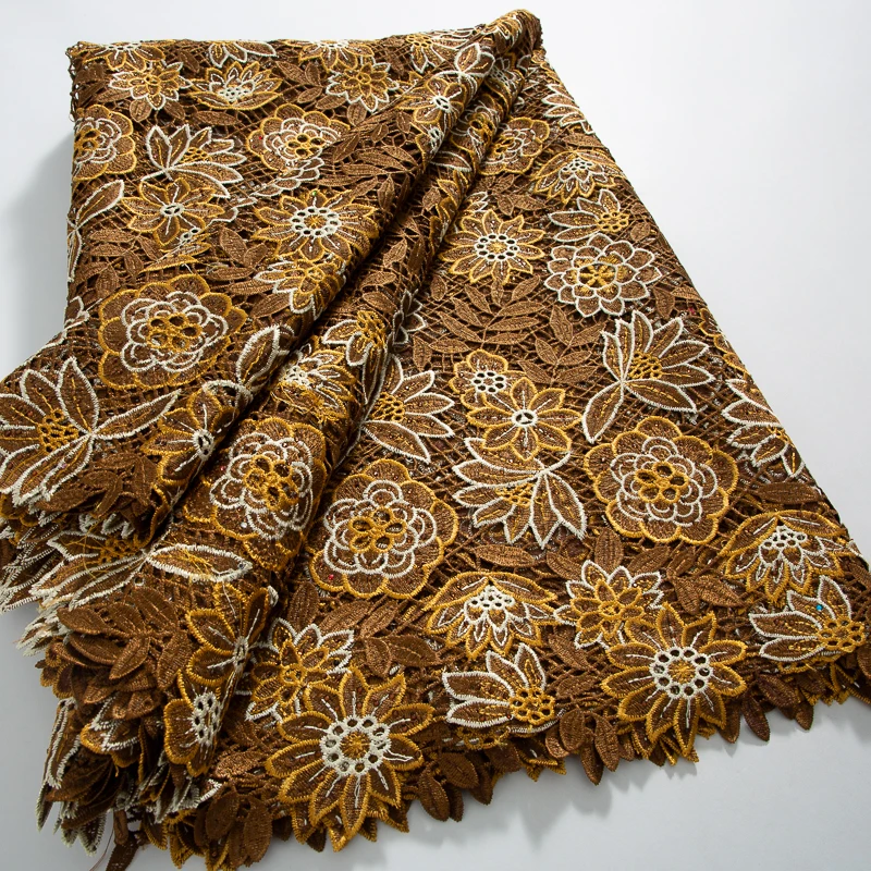 Latest Nigerian Water Soluble Lace Sequins Fabric 2025 High Quality Elegant African Cord Guipure Lace Fabric for Wedding Dress A