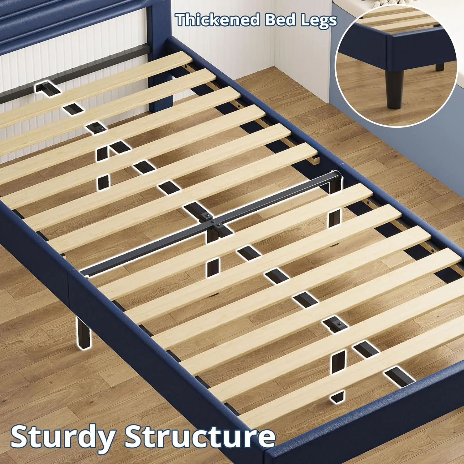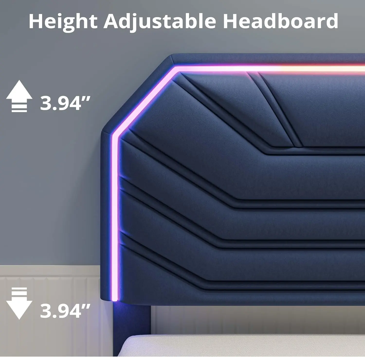 Adjustable Headboard: The blue PU material and line design form the unique style of this upholstered twin bed. The adjustable headboard can easily adapt to mattresses of different thicknesses from 8 to 12 inches