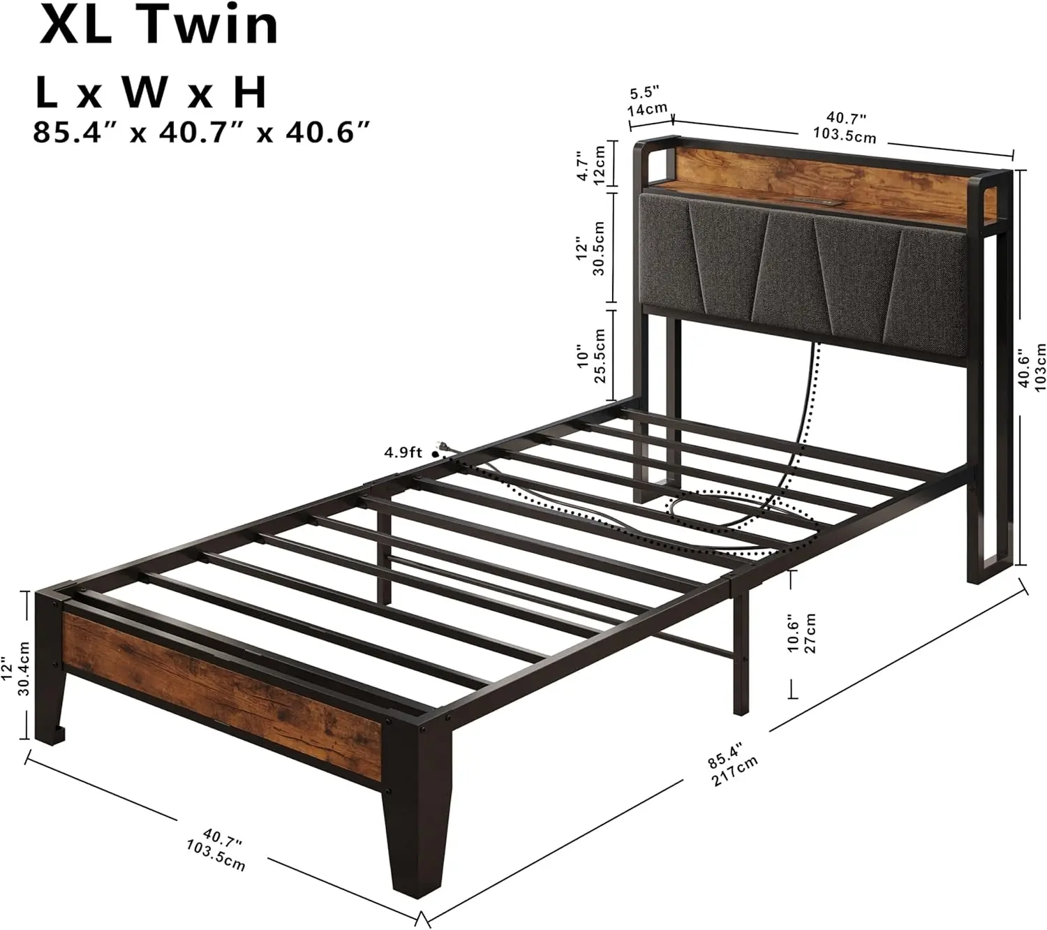 LIKIMIO Twin/Twin XL/Full/Queen/King/California King Bed Frame with Storage Headboard and Charging Station