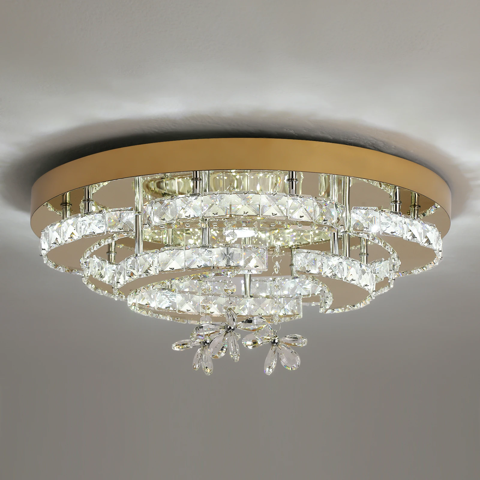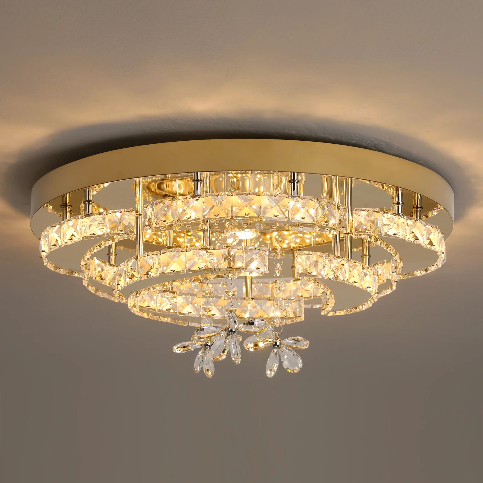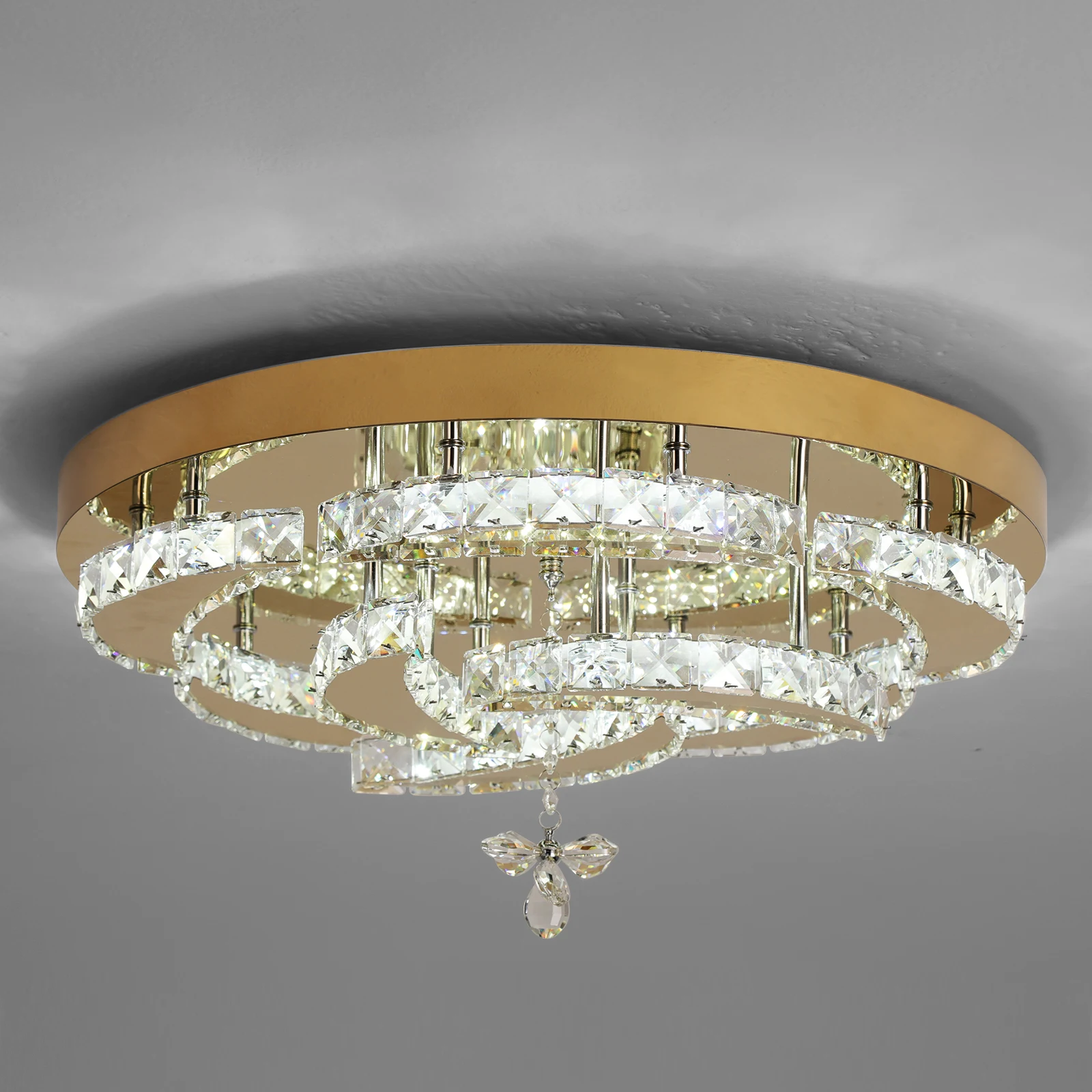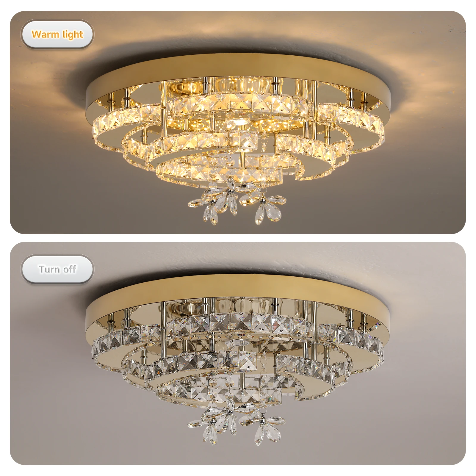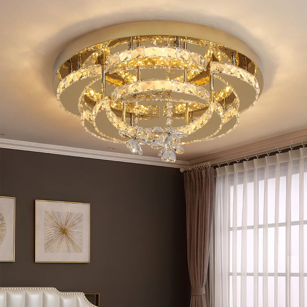 Luxury Gold K9 Crystal Ceiling Lamp Dimmable Led Chandelier Modern Living Dining Room Decor Pendant Light Lustre Home Fixture