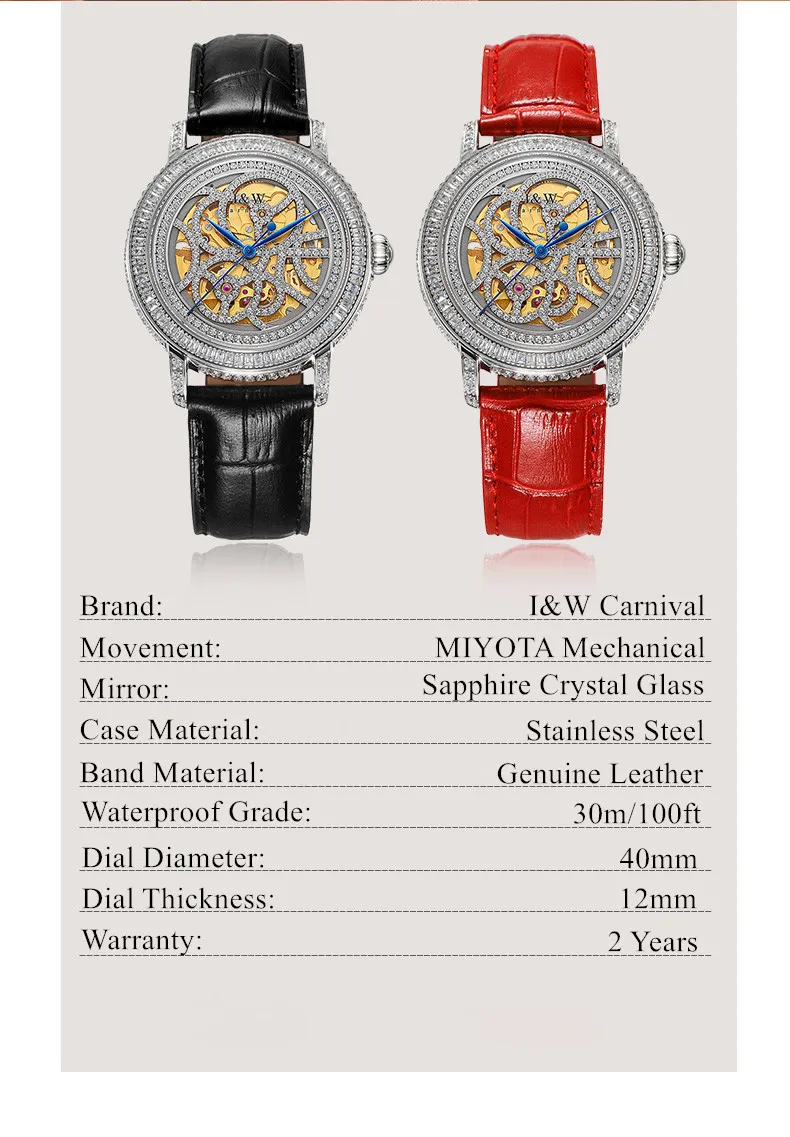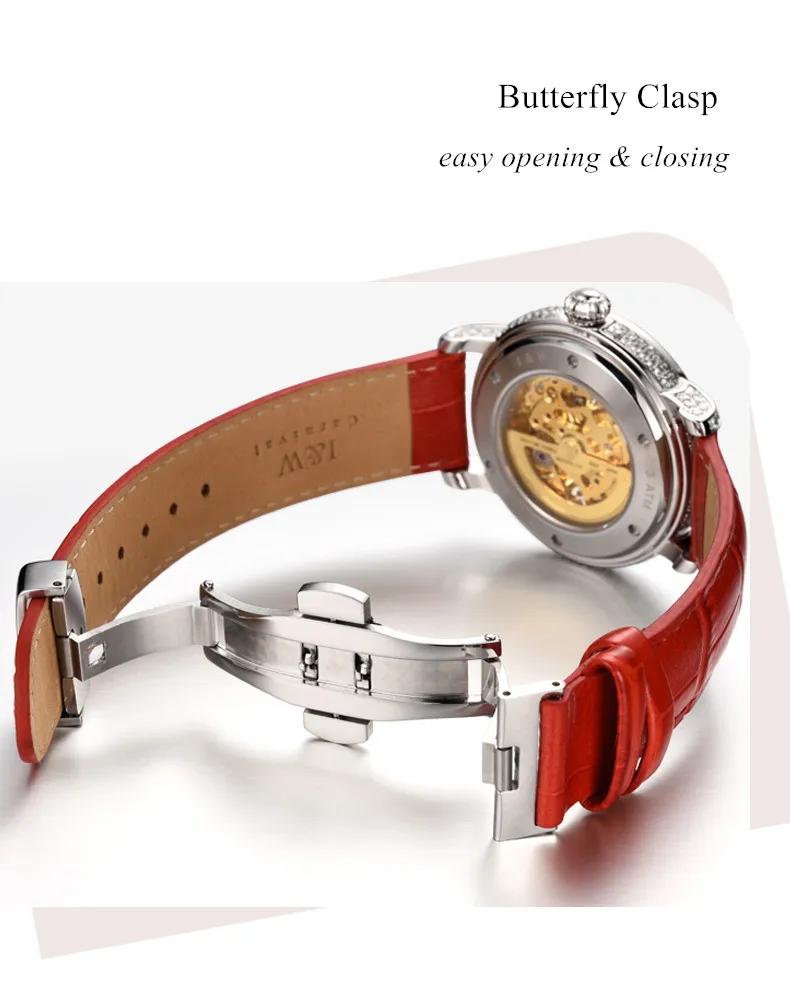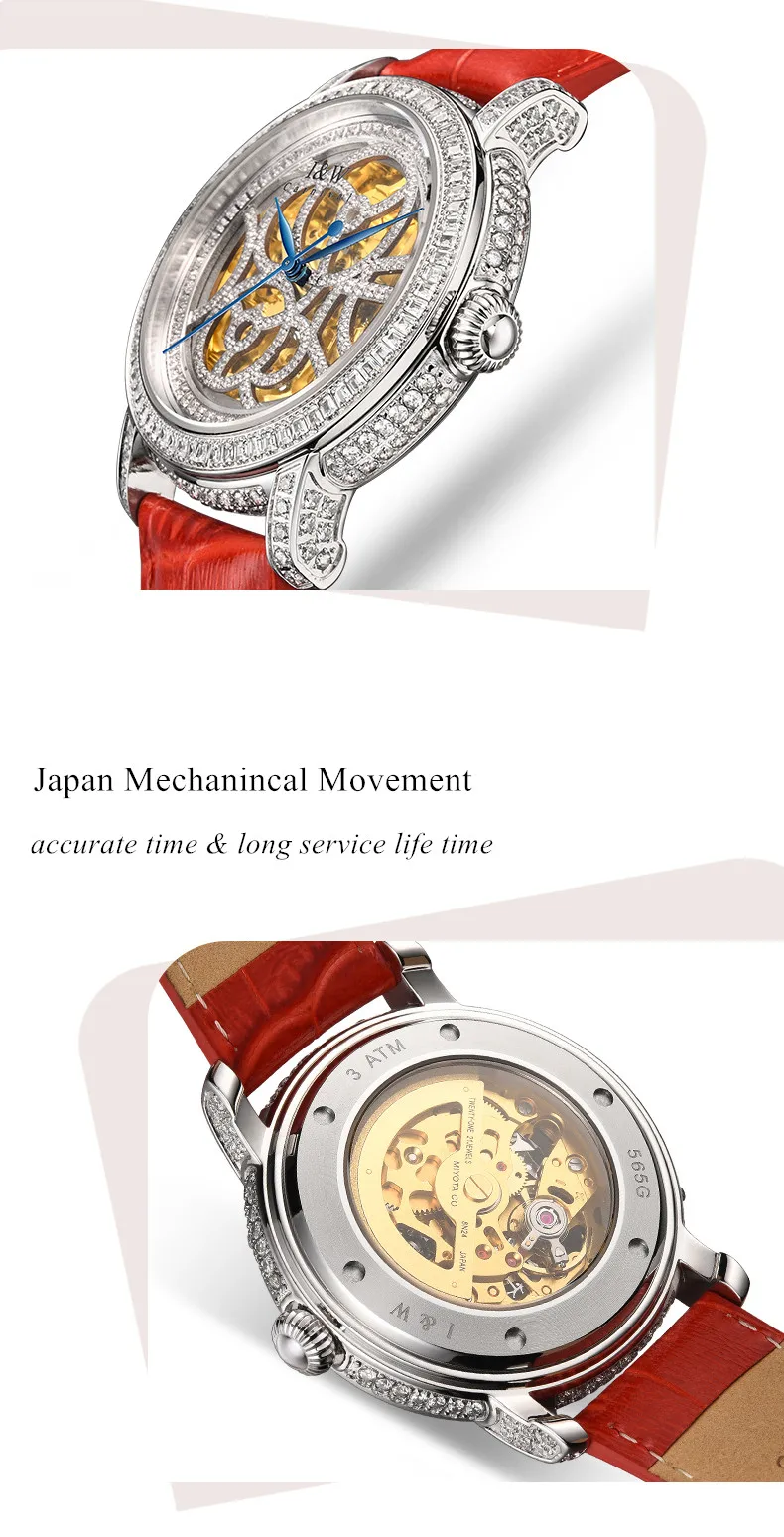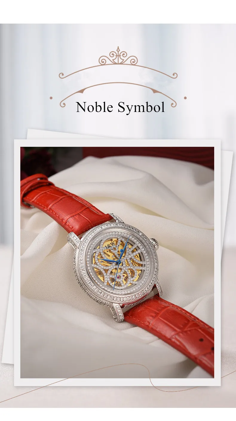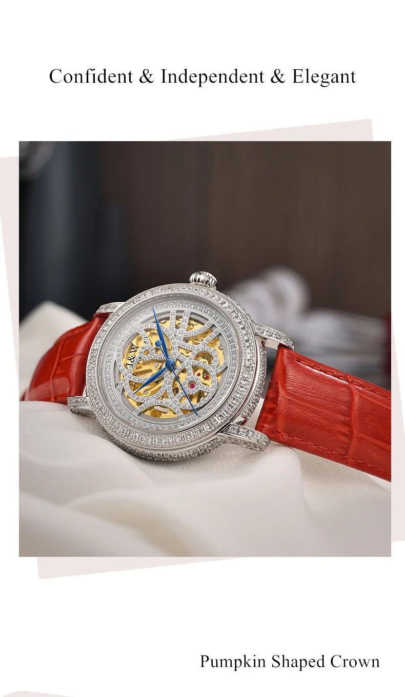 Luxury Mechanical Women Watches Brand Diamond Case Skeleton Elegant Leather Strap Waterproof Ladies Wristwatch Girls Dress Watch