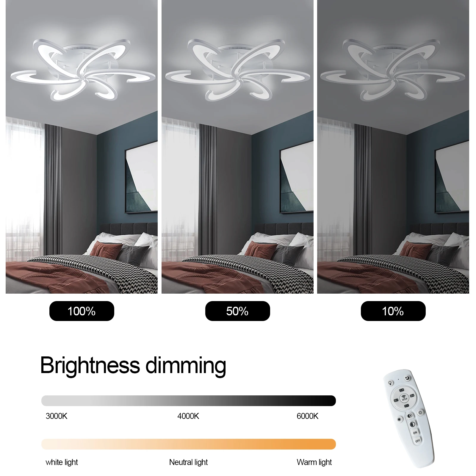 dimmable: Cool White/ Warm White / neutral light 3 colors dimmable with remote control