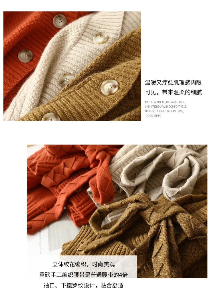 Naizaiga 100 cashmere pink white V-neck hollow reglan sleeve long sleeve winter Women cardigans jacket female sweater ,KSN191