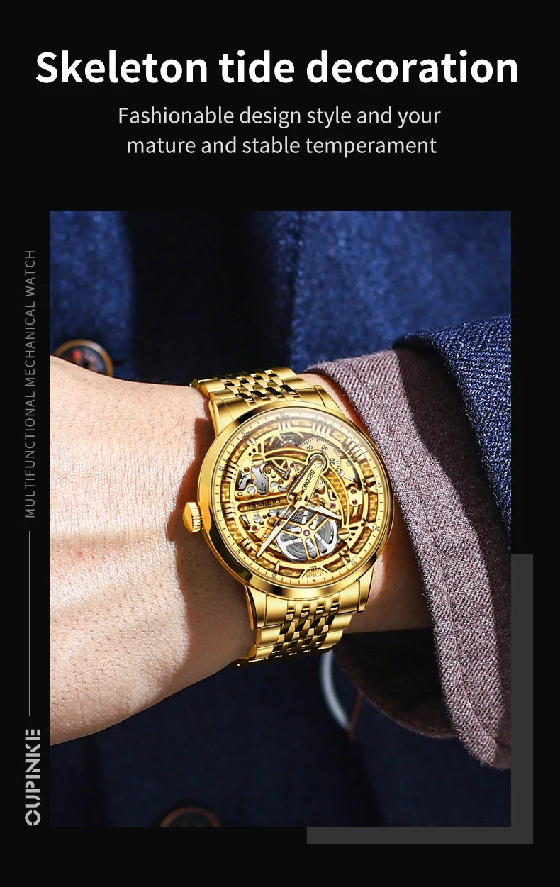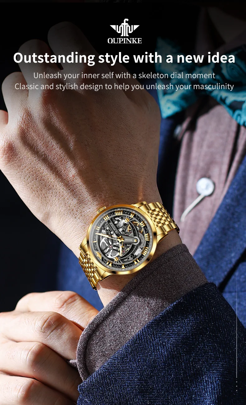 OUPINKE 3173 Man Watches Top Brand Automatic Mechanical Watch For Men Skeleton Flywheel Luxury 50M Waterproof Dress Hand Clock