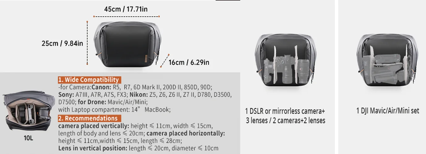 PGYTECH OneGo Solo V2 Camera Shoulder Bag 4L 6L 10L Crossbody Camera Sling Bag Outdoor Travel Bag For Sony /Canon/ Nikon