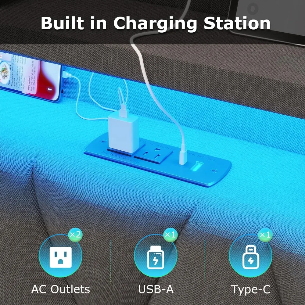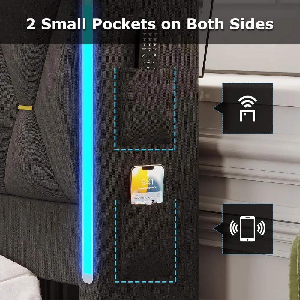 【LED Light Bed Frame】The Queen Size Bed Frame with Storage is equipped with smart LED Light Strips on the Headboard and Footboard. You can use the equipped Remote Control or App to set Colors (over 60,000 colors to choose from), Brightness, Modes, and Timing Function according to your preferences to meet the needs of different Styles and Scenes, making your Bedroom life more colorful