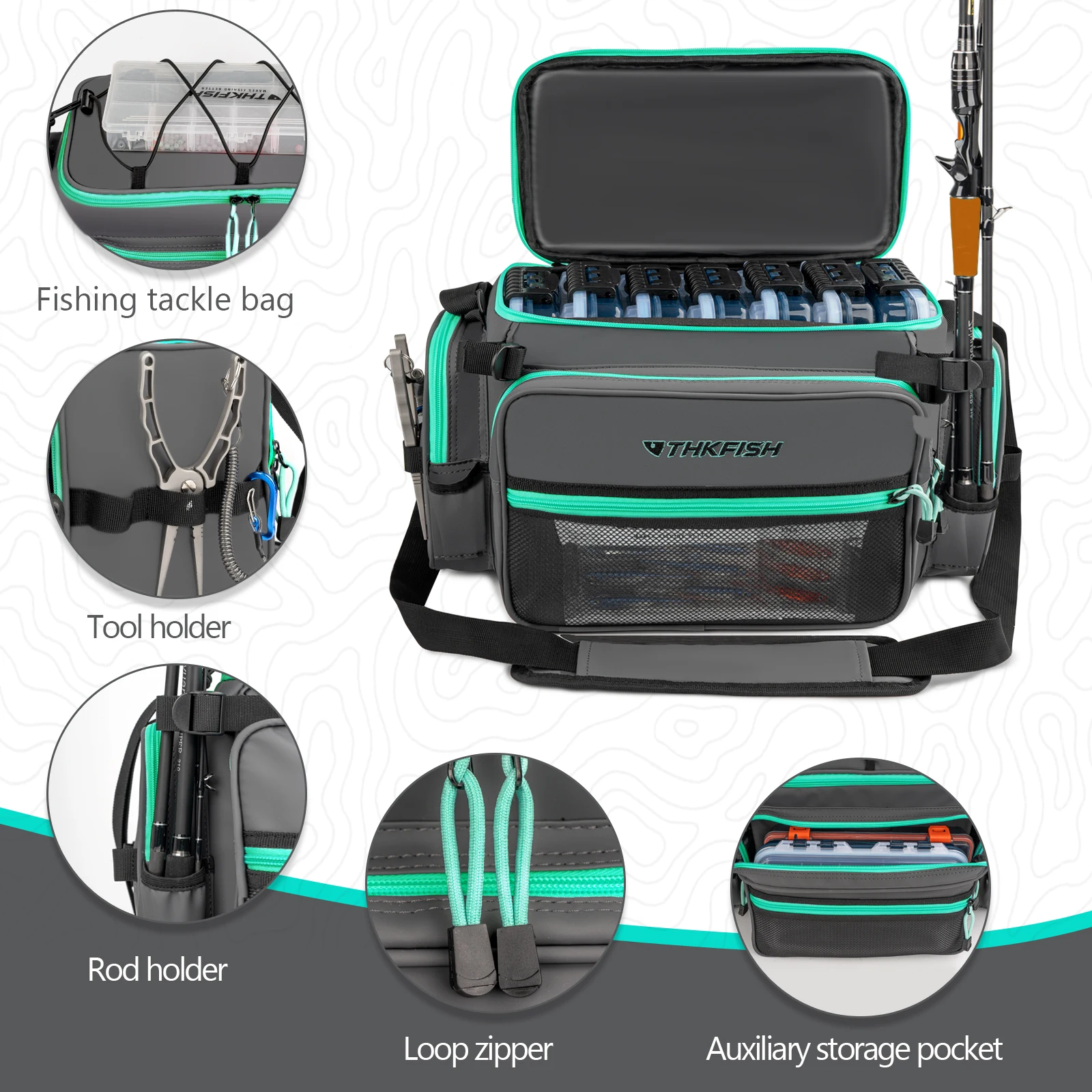 1. Strong & Waterproof: THKFISH fishing tackle bags is made of 1000D PVC material which is salt water resistant and effectively prevents water infiltration, the zippers are also waterproof and rustproof, which can effectively prevent your fishing gear and equipment from getting wet, the high-density and abrasion-resistant material ensures that your fishing tackle box organizer bag maintains a long term excellent and sturdy appearance.