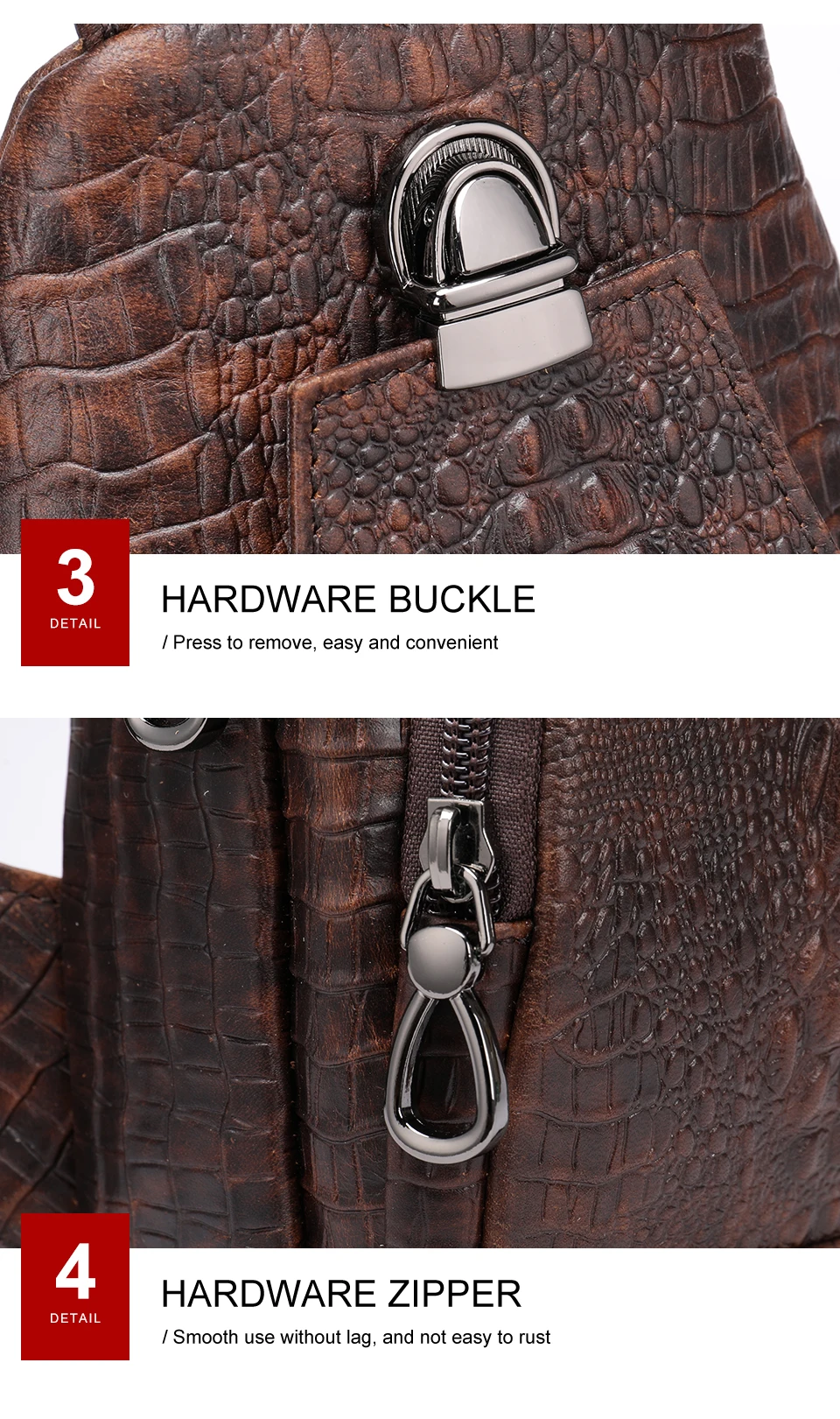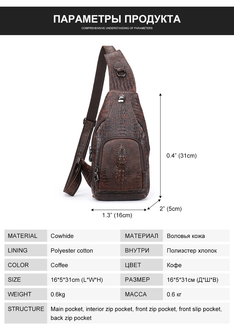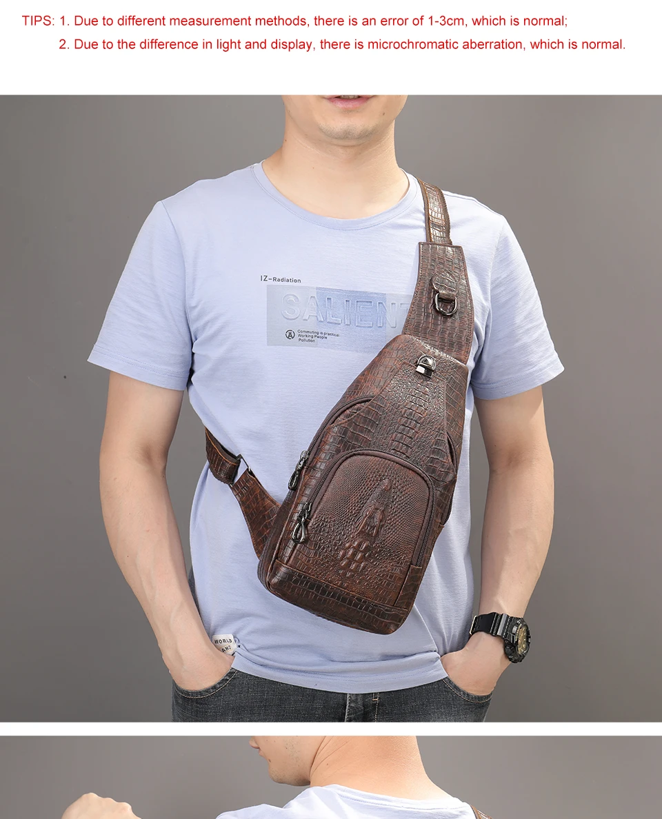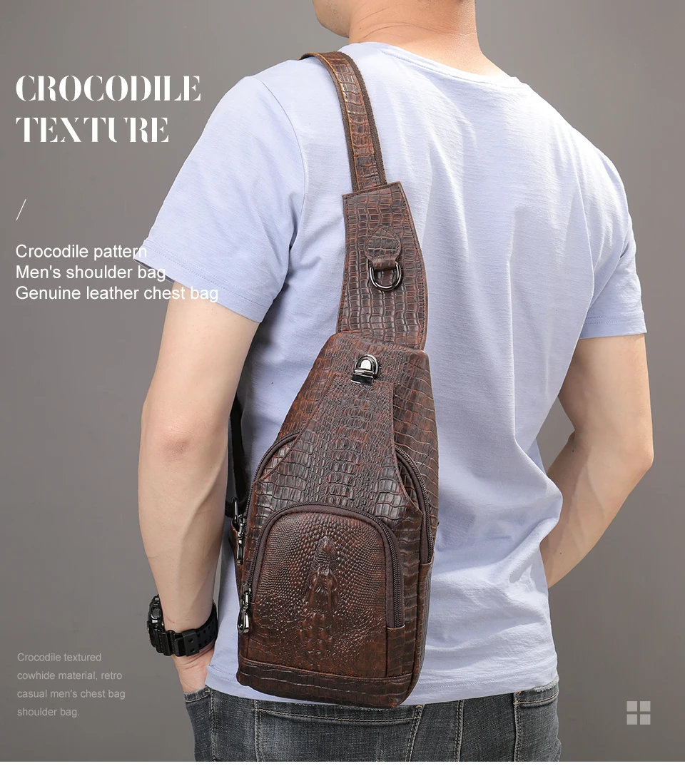 WESTAL Genuine Leather Sling Bag Anti-Thief Crossbody Personal Pocket Bag Chest Shoulder Bag for Travel Hiking Croco Design Bags