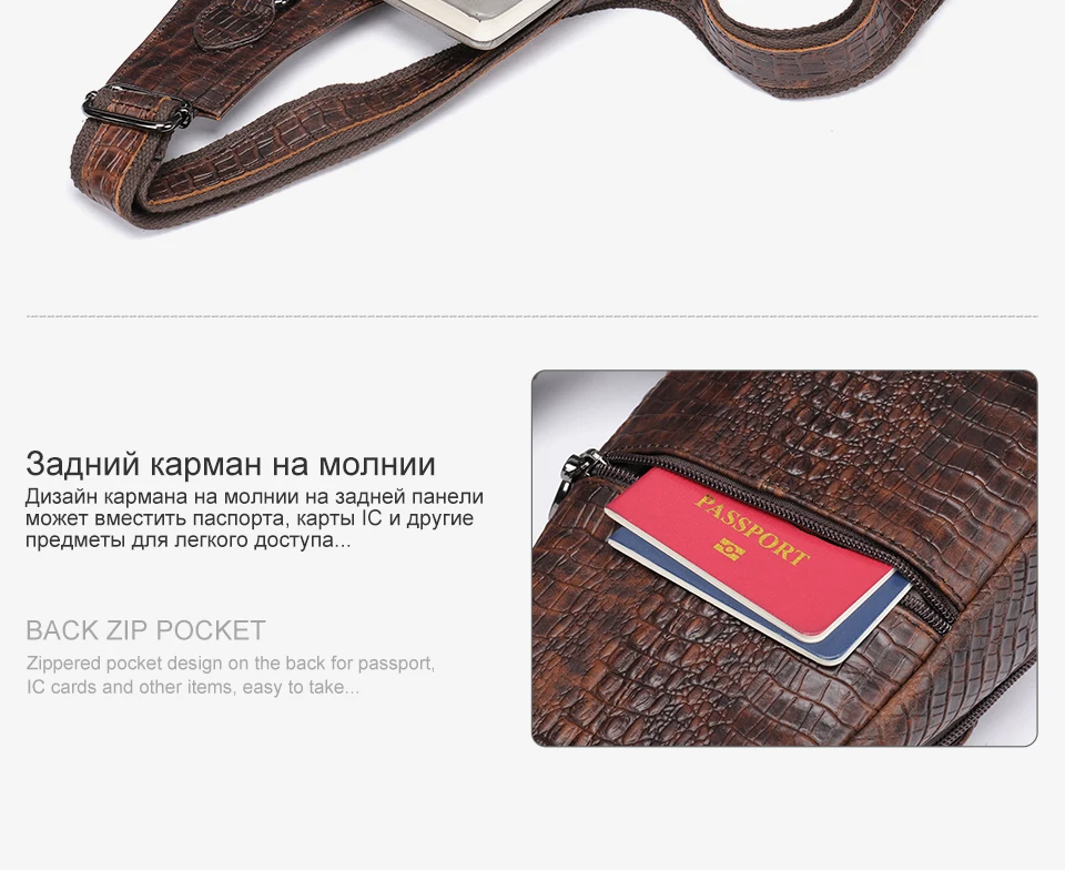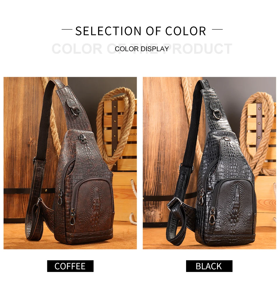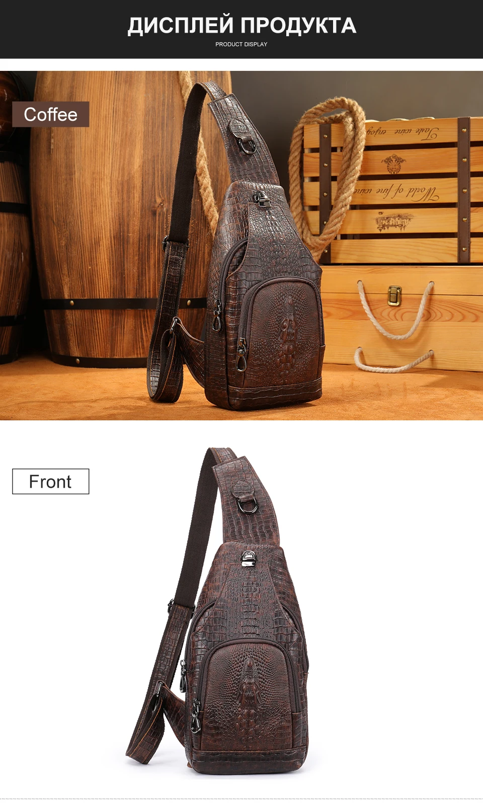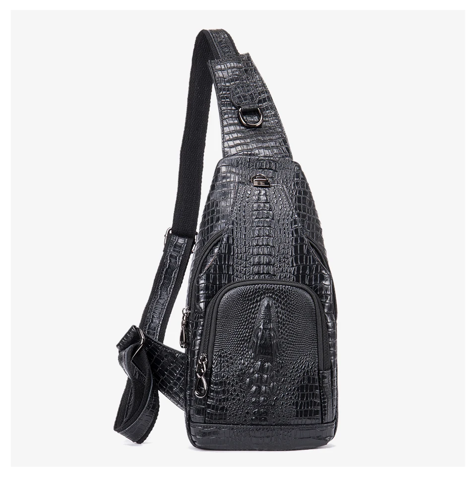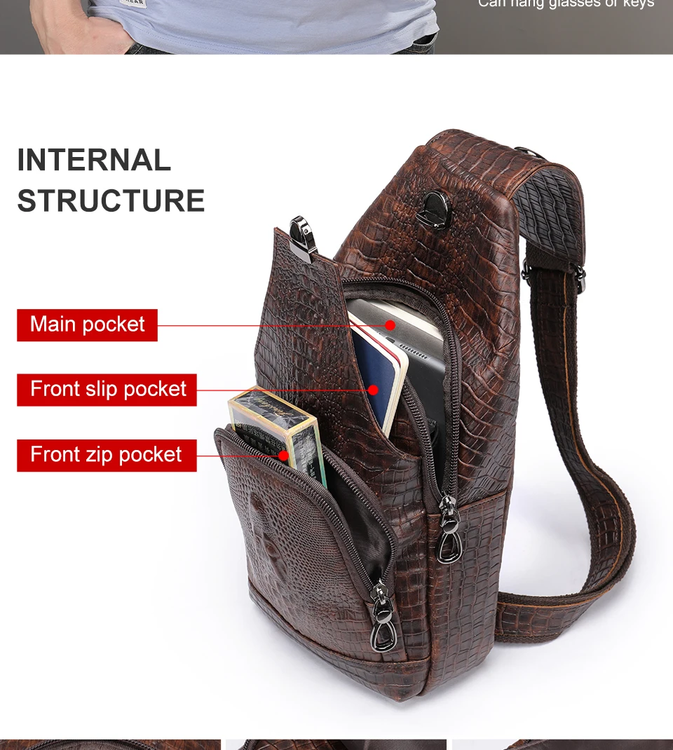 WESTAL Genuine Leather Sling Bag Anti-Thief Crossbody Personal Pocket Bag Chest Shoulder Bag for Travel Hiking Croco Design Bags