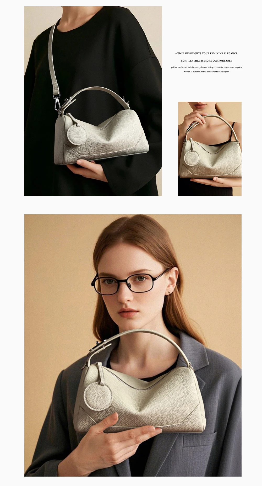 Women's Genuine Leather Shoulder Bag Tassel Boston Bag 2025 Trendy Fashion Bag For Girls Small Grey White Square Bags Shoppers